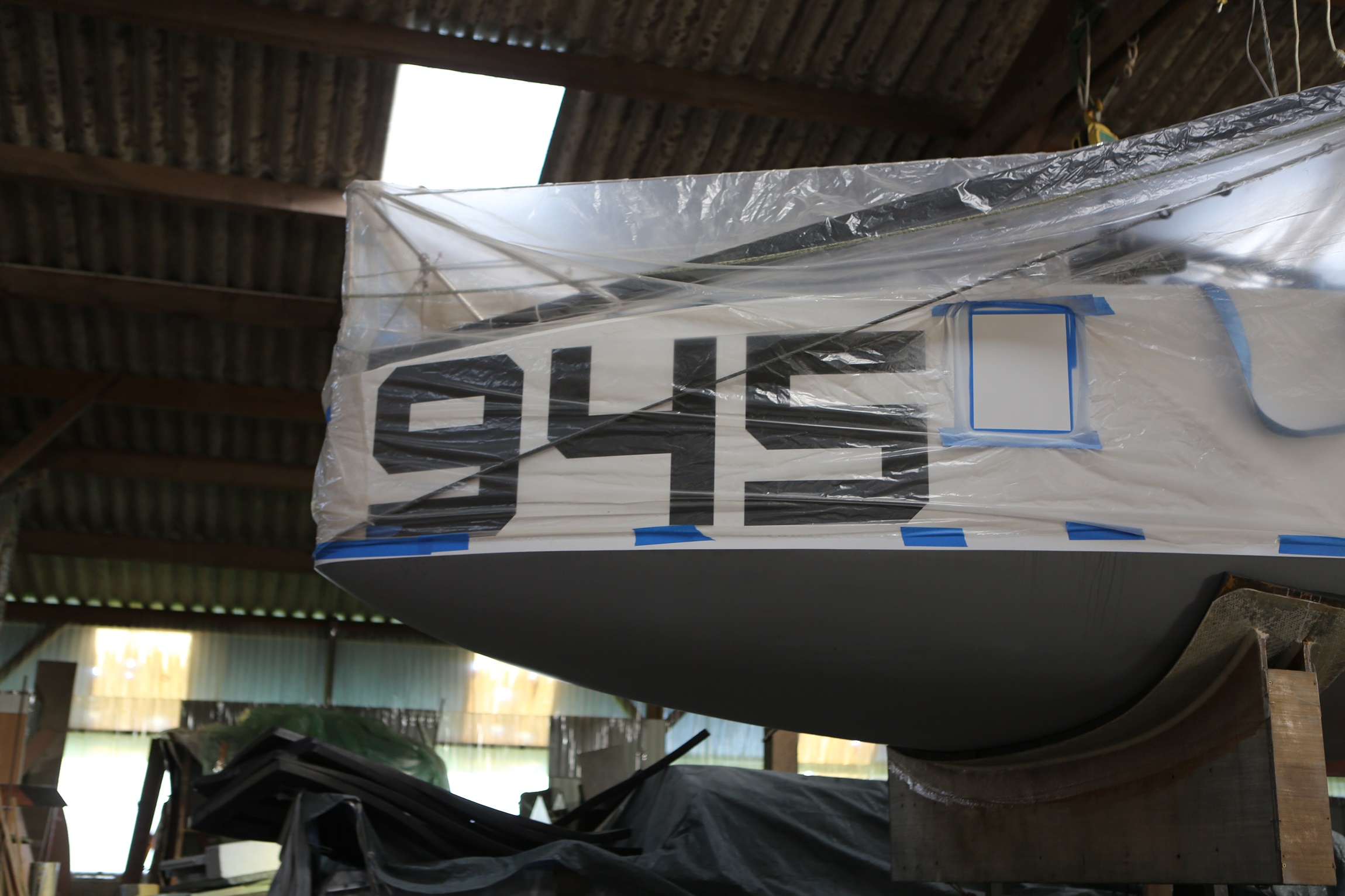 Enfin, j'ai agrandi mon numéro sur le pont du bateau , qui n'était auparavant pas exactement conforme à la "jauge mini". C'est l'occasion de vous rappeler que nous ne construisons pas nos bateaux n'importe comment ! Tout est en effet régi par une série de règles strictes définies par la Classe Mini, composée par les coureurs eux-mêmes. Cette jauge dicte autant des contraintes dimensionnelles, de choix de matériaux utilisés et autre aspects techniques de façon à garantir une certaine homogénéité de la flotte, mais aussi bon nombre de règles pour garantir la sécurité. Ce numéro sur le pont doit ainsi être suffisamment grand pour être lu par un avion en cas de survol (une situation qu'on ne préfère pas connaître, mais on se plie évidemment aux règles !) Récemment, la Classe Mini essaie aussi de rendre ses courses plus écologiques, en imposant notamment pour la première fois dans la course au large des limites en nombre de bouteilles plastique autorisées à bord !