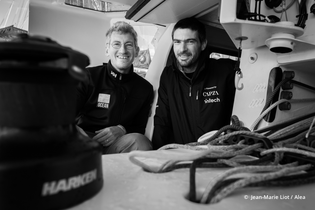 Ce dimanche 7 novembre, à 13h27, les 158 concurrents de la 15ème édition de la Transat Jacques Vabre ont pris leur envol, direction Etretat, avant de se lancer à l’assaut de l’Atlantique dans des conditions idéales. Lancés à pleine vitesse, les Ultimes ont pris la tête de la course, suivis par les Ocean Fifty, les Imoca, puis les Class40, dont notre cher équipage du Class40 Project Rescue Ocean !